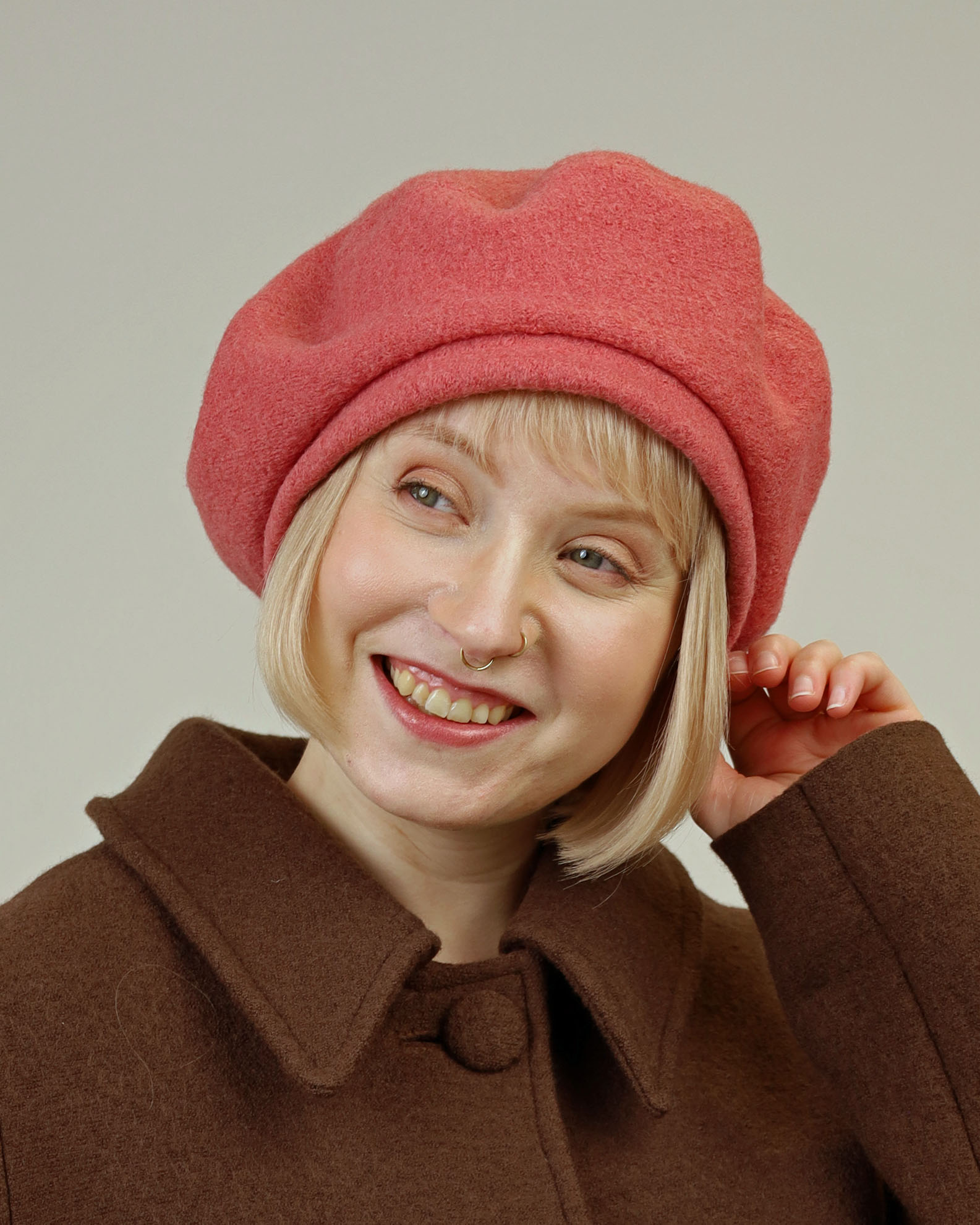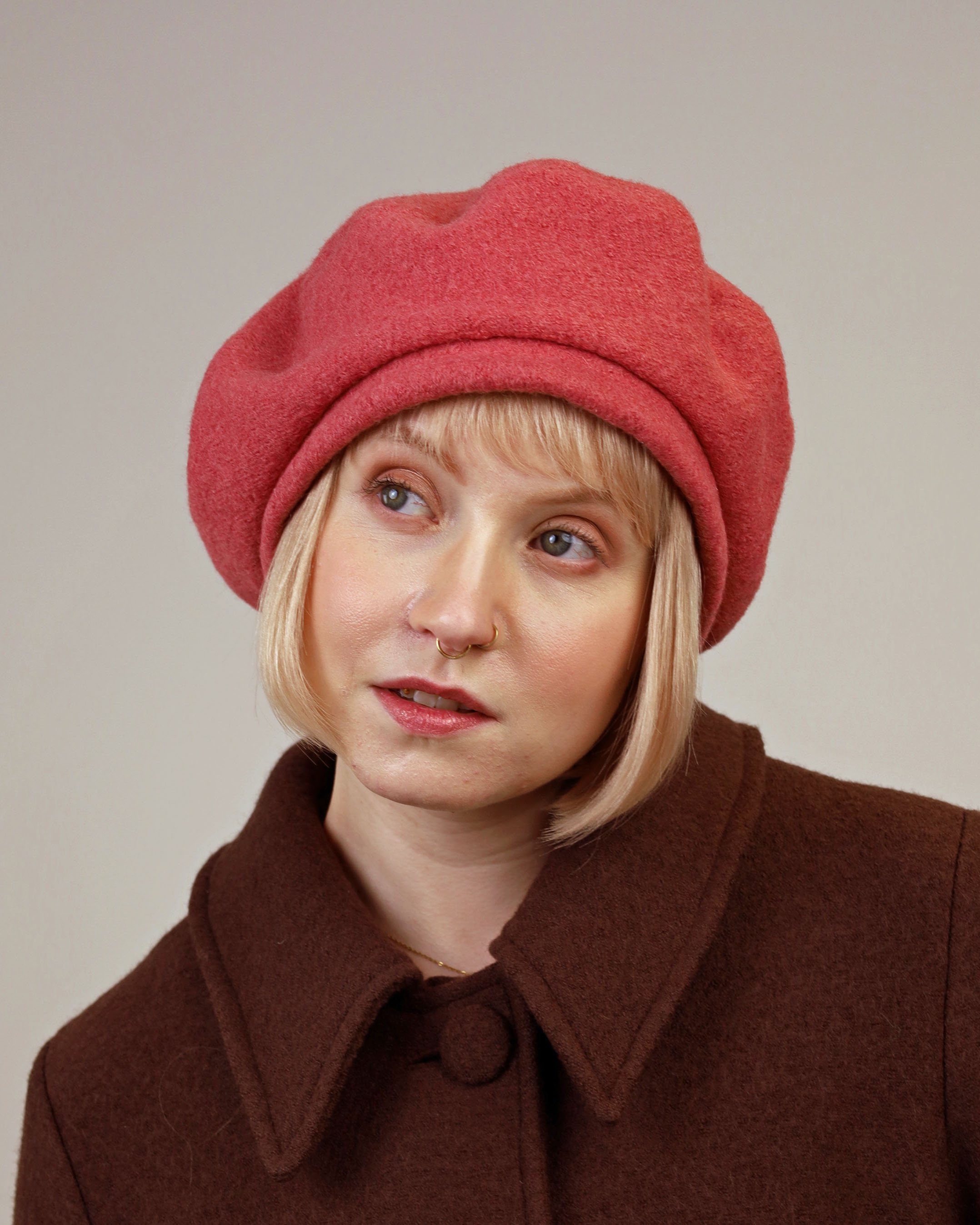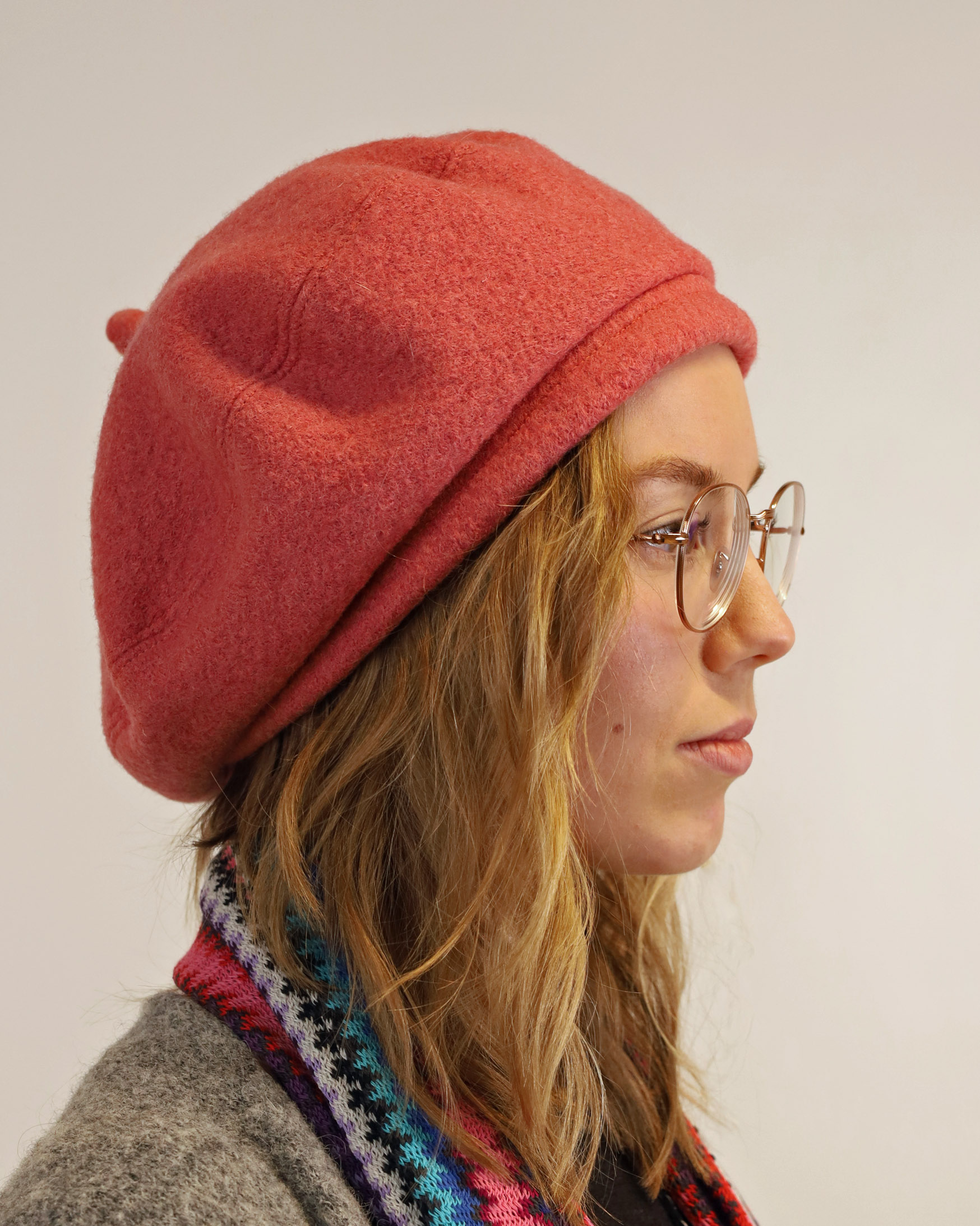 Kotimainen, Tampereella, villakankaasta valmistettu baskeri. Tässä Baskerissa on kiva reunus, jonka voi halutessaan kääntää myös baskerin sisäpuolelle, jolloin päähineestä tulee matalampi.