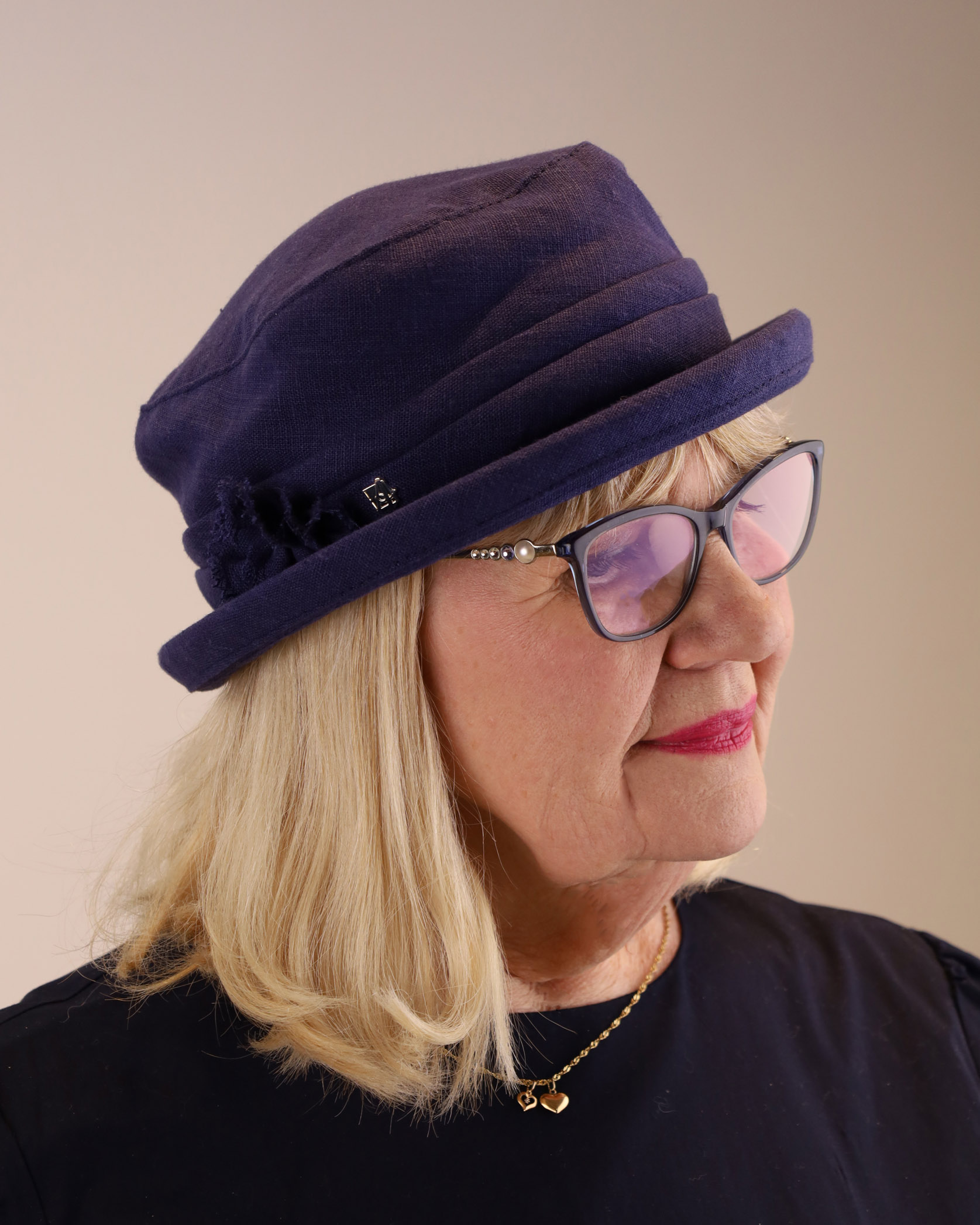 Siro kesälakki kapealla lierillä, joka kaartuu ylöspäin. Ylöspäin kaartuva lieri keventää kauniisti. Lierin reunaa ryhdistämässä karkaasinauha. Päähineen sivulla pieni kukka-aihe koristeena sekä A-merkkimme kertomassa laadukkaasta kotimaisesta tuotteesta.