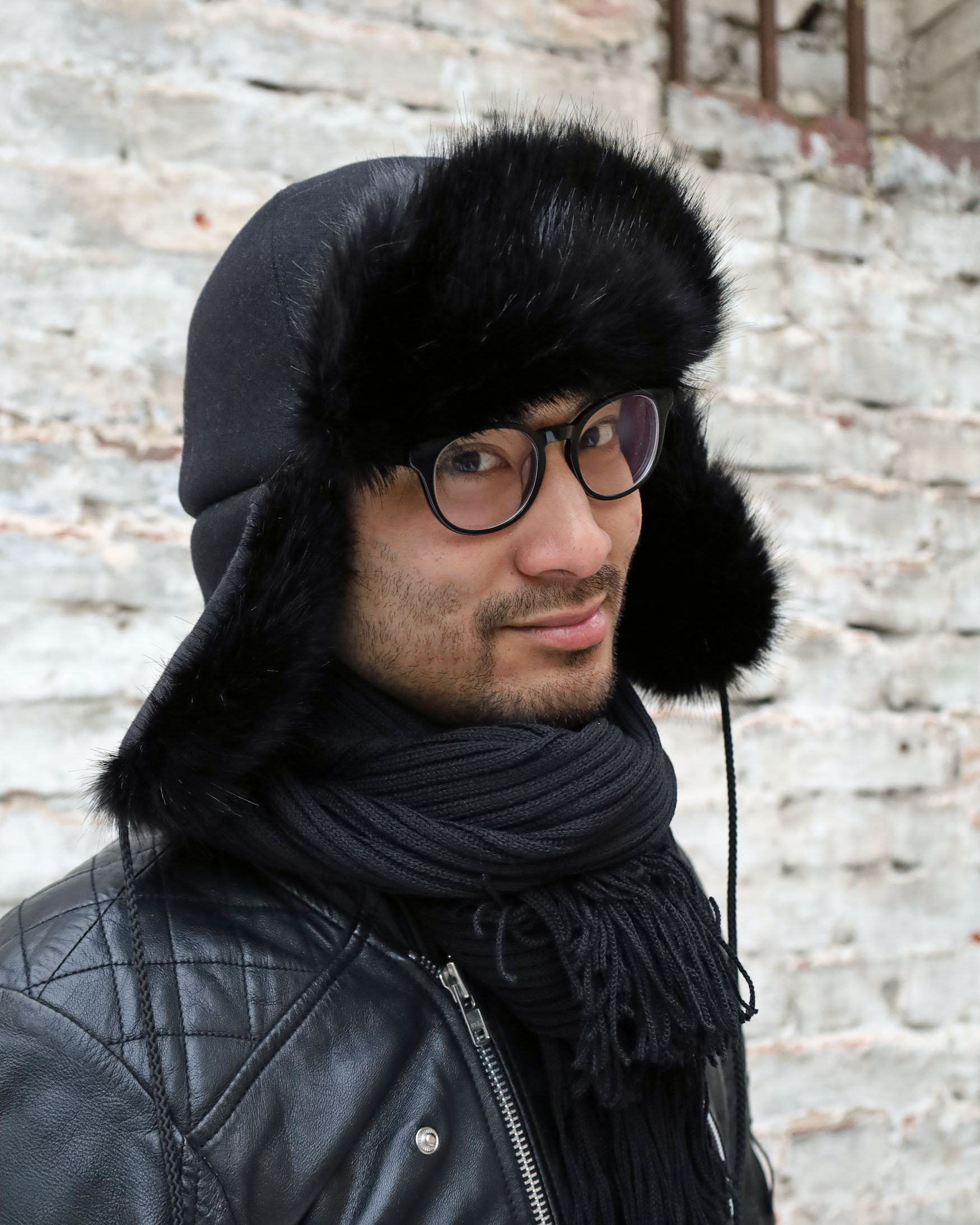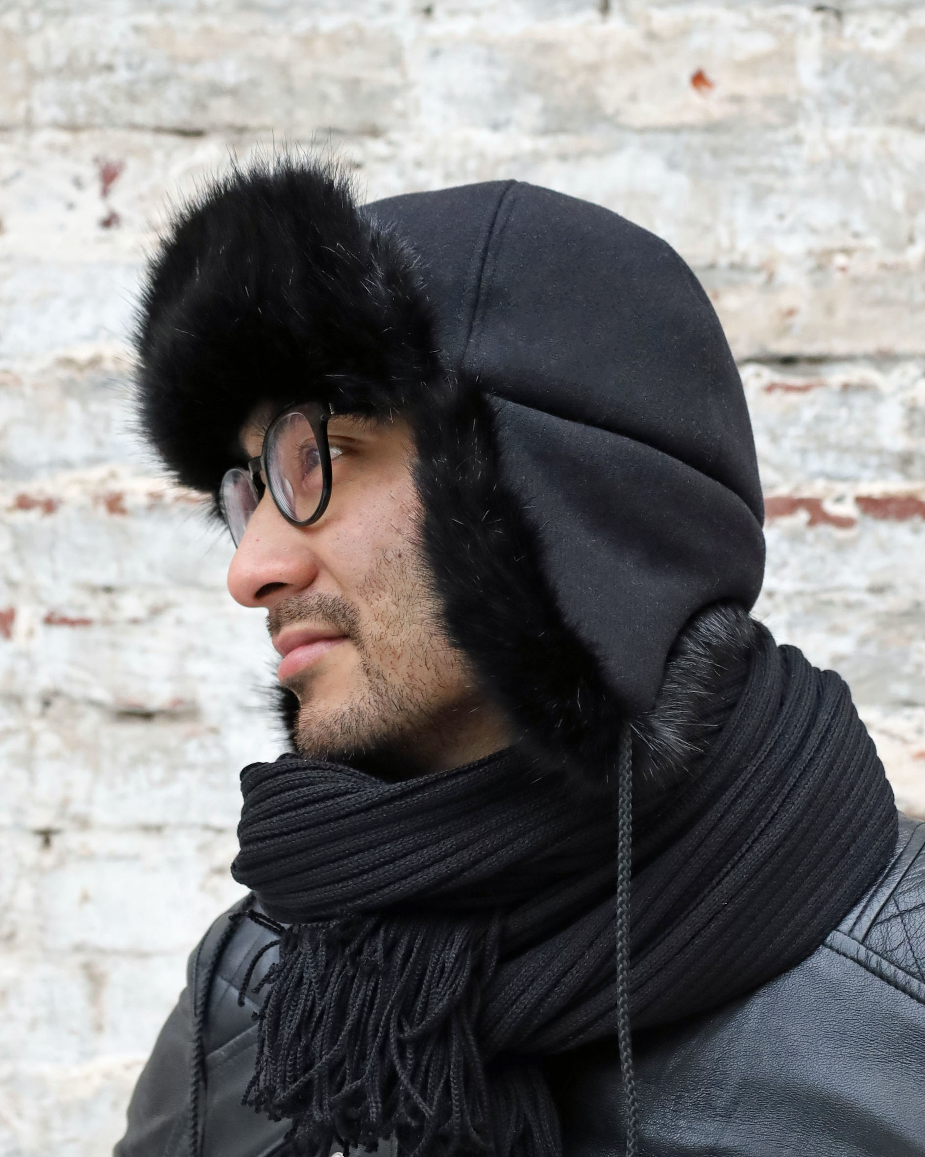 black = black wool with black faux fur