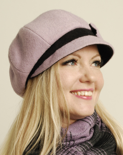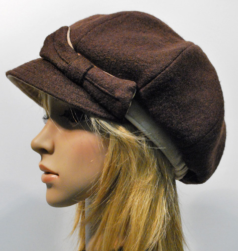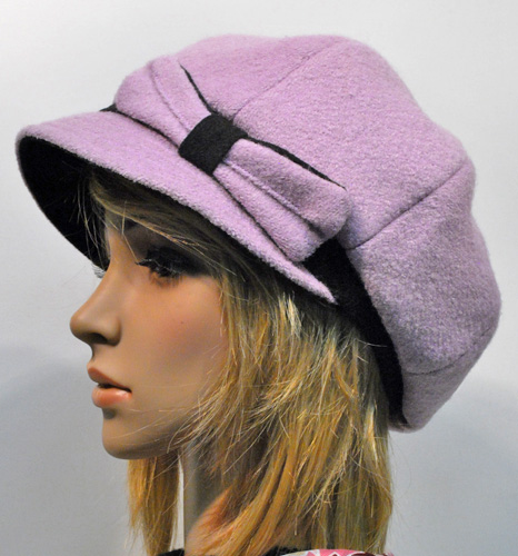 A fashionable cap with a feminine visor and embellished bow. A comfortable rubber band behind. The headdress is beautiful and comfortable.