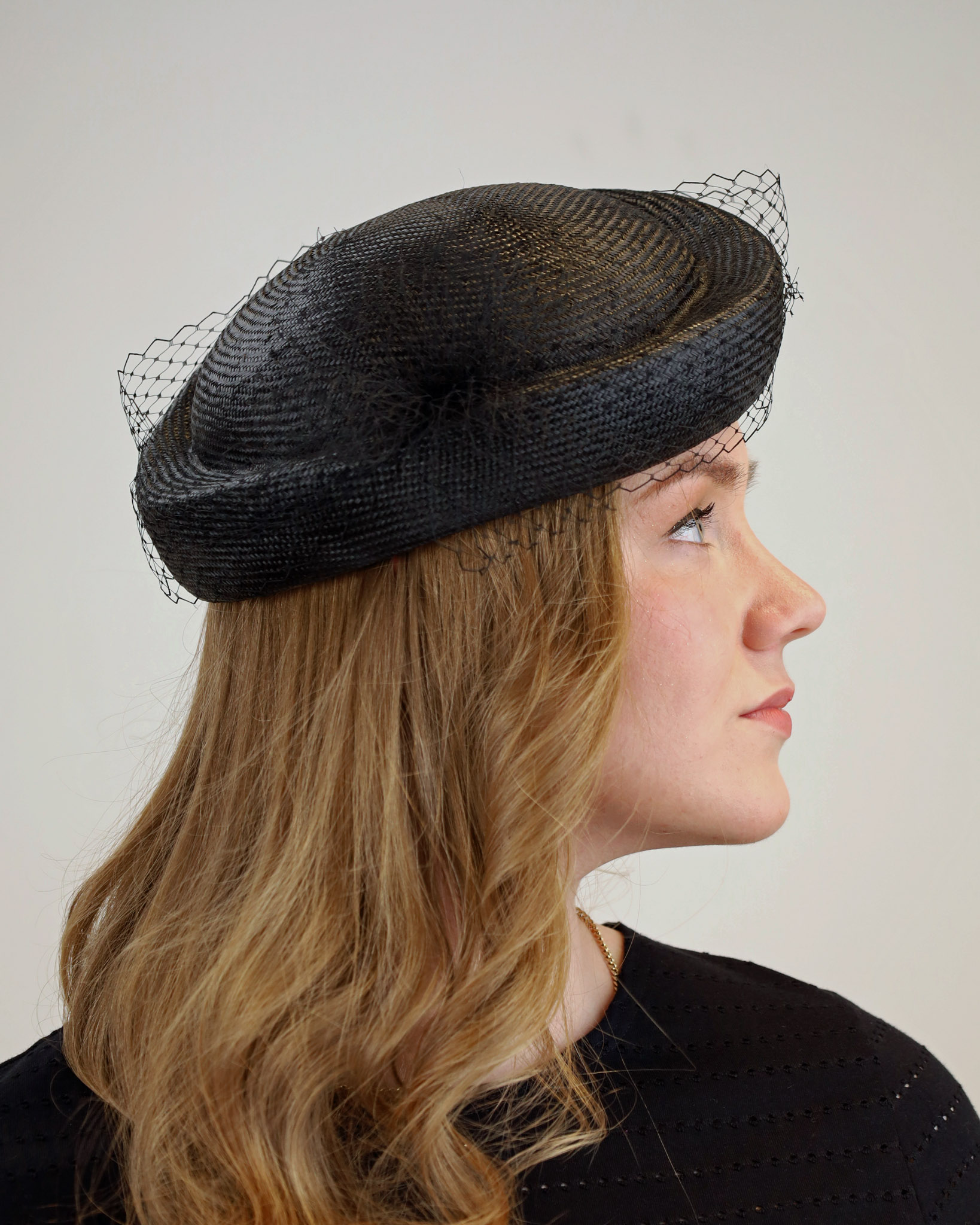 Kevyestä sisol-luonnonkuidusta valmistettu kaunis suikkapilleri. Päähineessä kaunis herkkä harso koristeena.