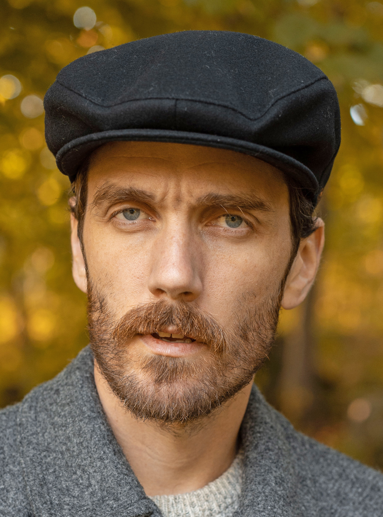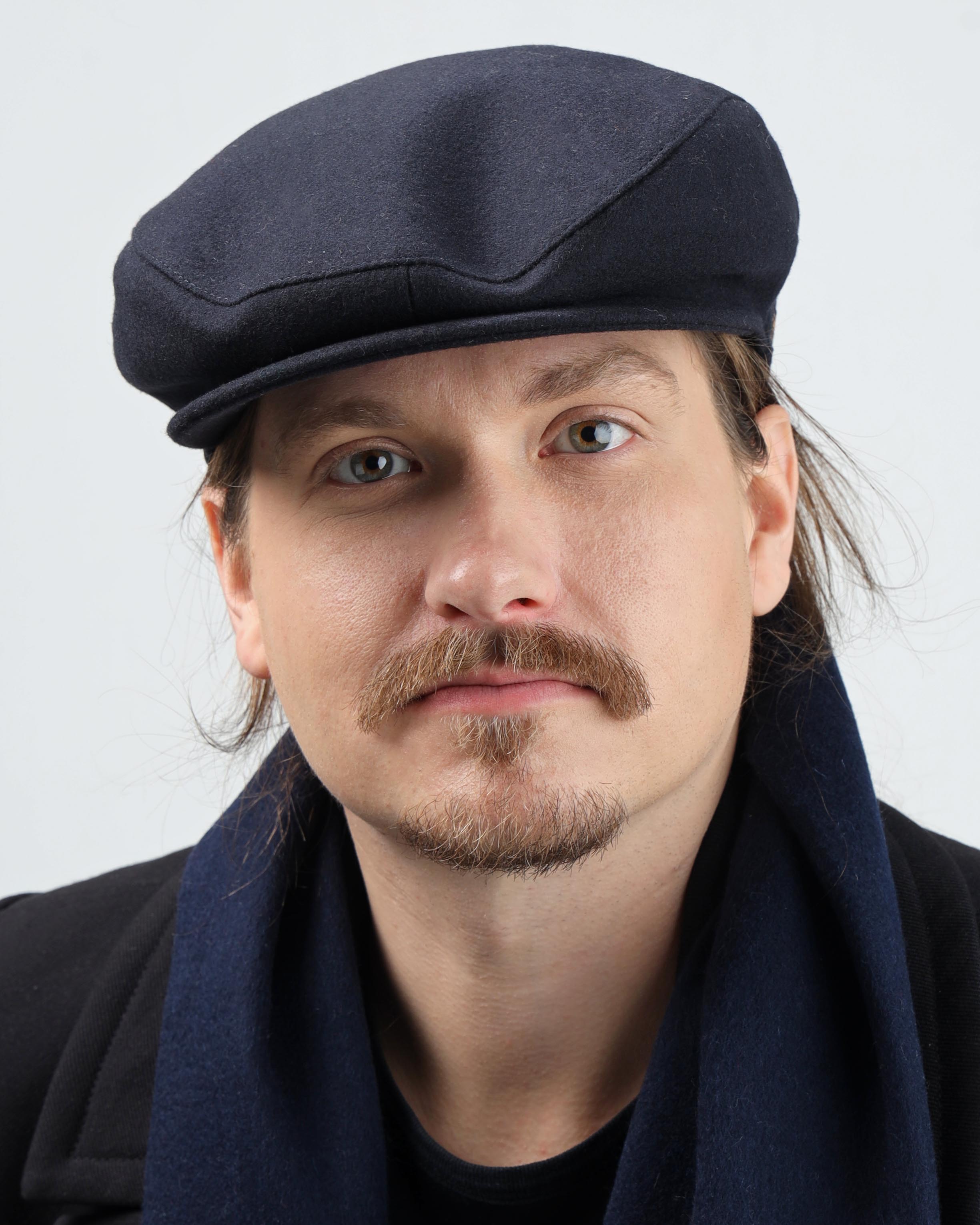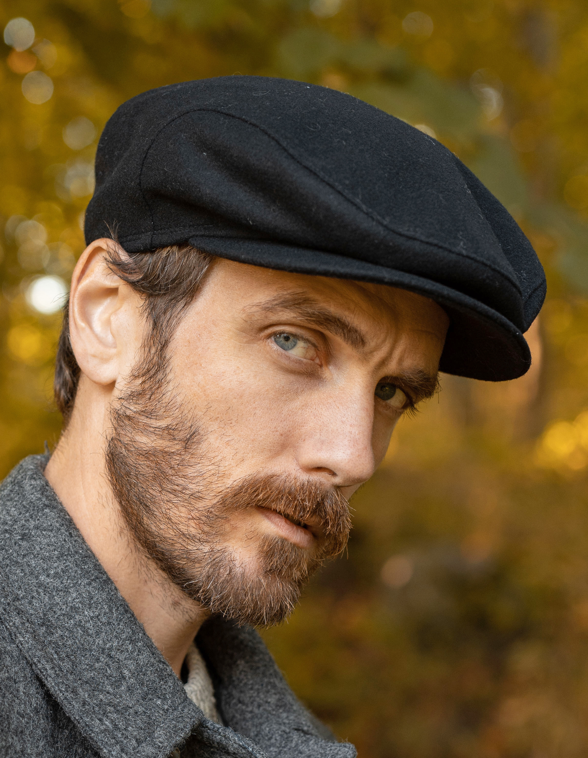Simple and stylish black flat cap from Finland. This cap has earflaps and warm lining.