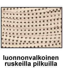 Värivaihtoehdot: musta(jossa valkoisia pilkkuja) ja luonnonvalkoinen(jossa ruskeita pilkkuja)OneSize (max. 58cm)Hikinauhassa on kiristysnyöri, jolla hattua saa säädettyä/pienennettyä itselle juuri sopivaksi.